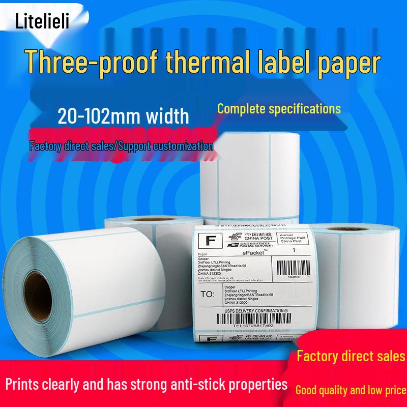 Wytrzymały papier termiczny do etykiet: Naklejki samoprzylepne do drukarki kodów kreskowych 60x40mm, 70x50mm, 80x100mm.