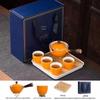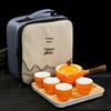 Portable Ceramic Kung Fu Tea Set with Bag – Includes One Pot, Four Cups, and Side Handle for Outdoor or Car Use
