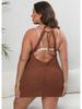 Plus Size Women's Knitted Tie-Up Backless Beach Cover-Up Dress F865