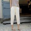 These Elastic Waist Loose Slimming Harem Pants are designed for a comfortable yet stylish fit, perfect for the spring and summer seasons. The pants are crafted from a blend of cotton and linen, offering both breathability and softness. They feature a versatile and artistic design, making them a great addition to any casual wardrobe. With a focus on comfort and style, these plus-size cropped pants boast an elastic waistband for easy wear and a flattering silhouette.