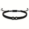 Regulowana ręcznie tkana bransoletka: Czarny z białą literą, serce, srebrny koralik - Wybierz jedną z 26 liter alfabetu angielskiego.
