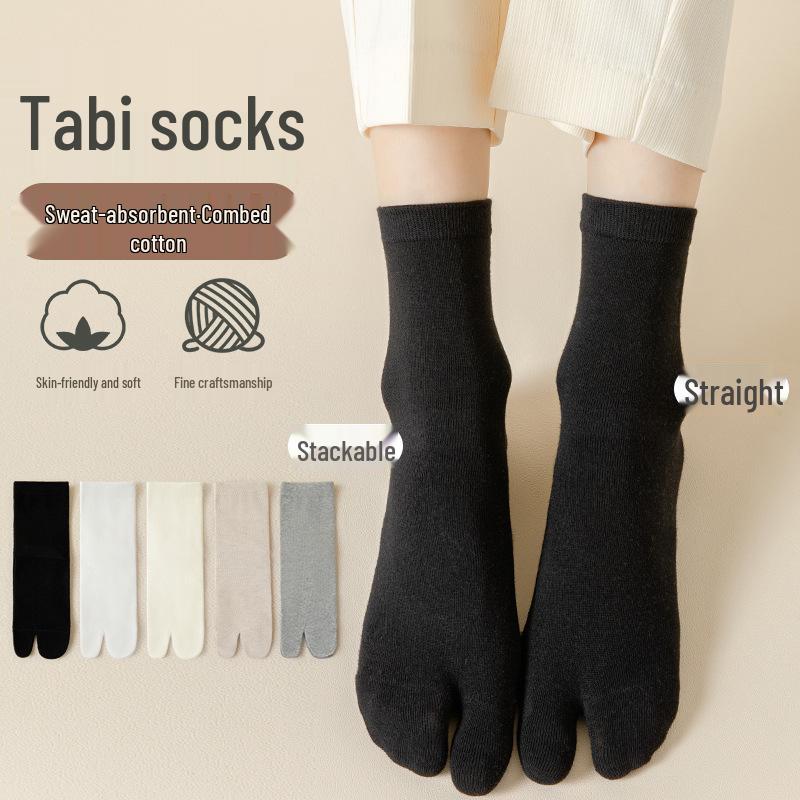 Damskie japońskie bawełniane skarpetki z rozcięciem na palcach – antypoślizgowe skarpetki do połowy łydki na wiosnę i jesień