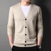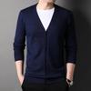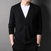Męski kardigan dzianinowy w stylu koreańskim, dopasowany, z głębokim dekoltem w serek - Sweter modny na wiosnę/jesień