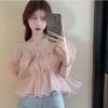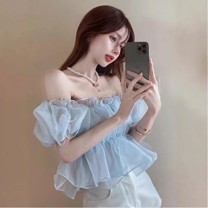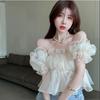 2025 Summer Women's Off-Shoulder Square Neck Puff Sleeve Top - Slim Fit Trend
