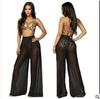 Europejskie i Amerykańskie Damskie Spodnie z Wysokim Stanem i Szerokimi Nogawkami z Siateczki - Seksowne, Przezroczyste, Wyszczuplające, Gotowe na Plażę.