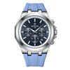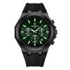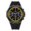 Men's Quartz Watch with Silicone Band, Multifunctional Design, Three Subdials, Six Hands, and Calendar.