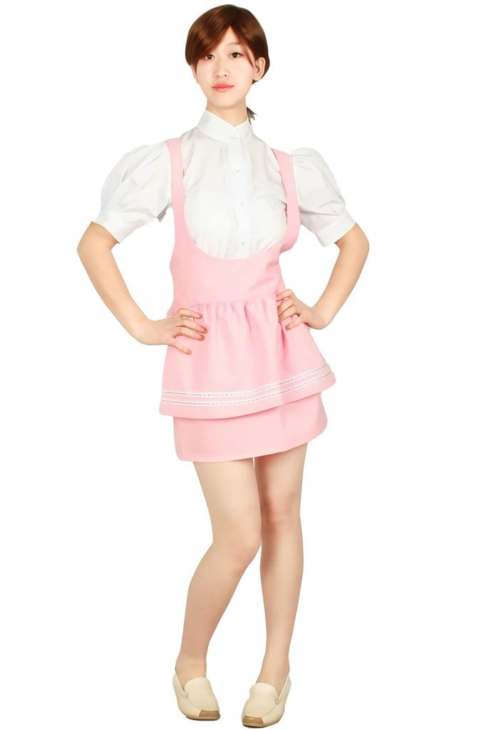 NOOLOR Anmira Uniform Waitress Maid Outfit Set Cosplay Costume (Size M, Pink)