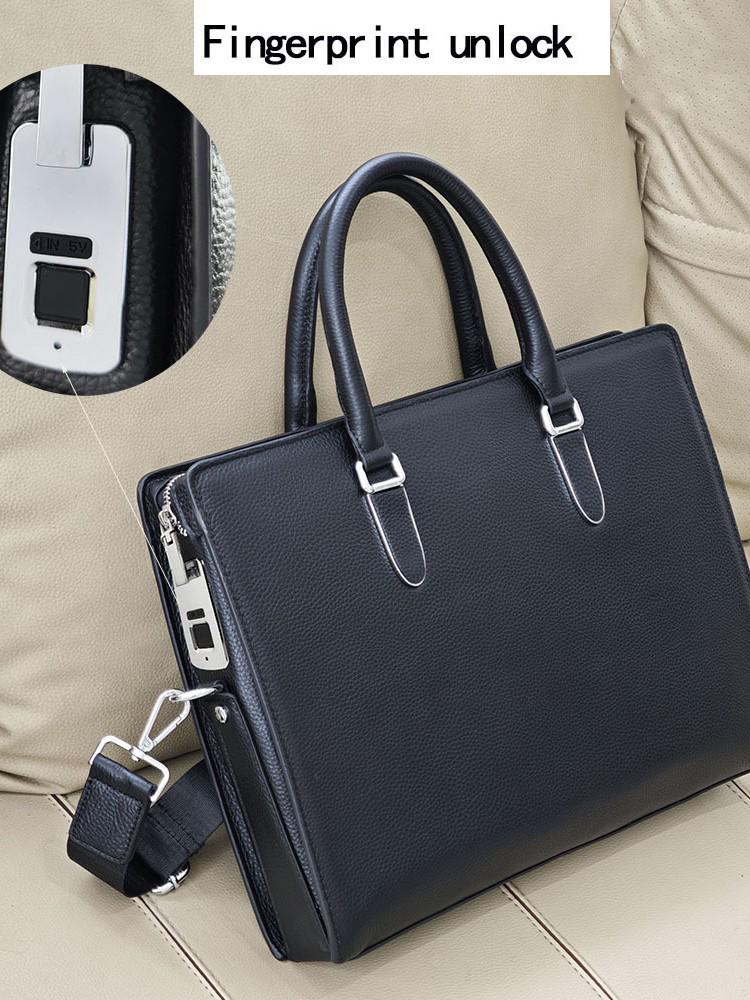 Men's Genuine Leather Anti-Theft Fingerprint Lock Briefcase - Top Layer Cowhide, Large Capacity, High-End Business Commute Handbag