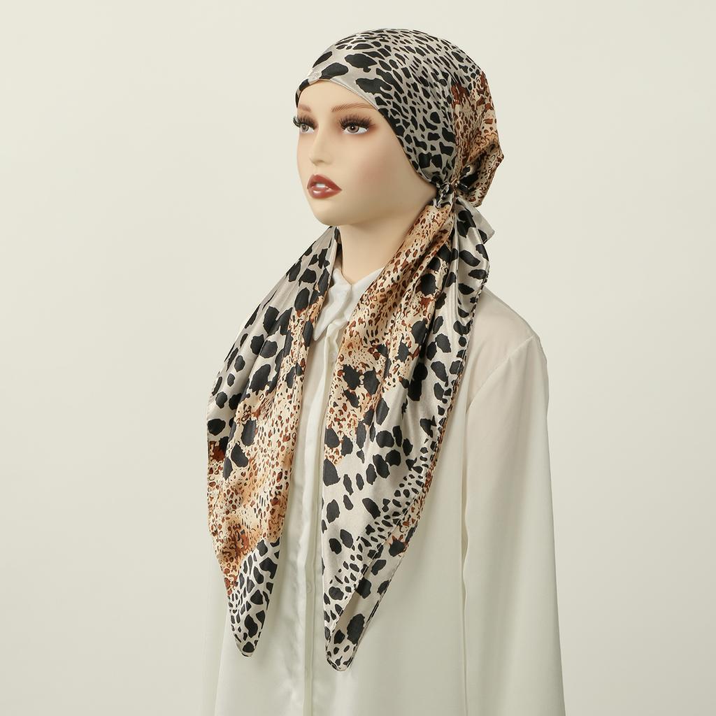 Leopard Printed Satin Silk Hat Caps Woman Muslim Hijab Hat Lady Fashion Instant Scarf Islamic Turban Bandana Foulard Headband