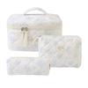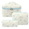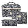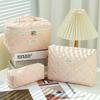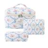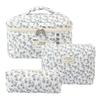 Pikowana bawełniana kosmetyczka w kwiaty o dużej pojemności - Przenośna i urocza do podróży lub dla studentki
