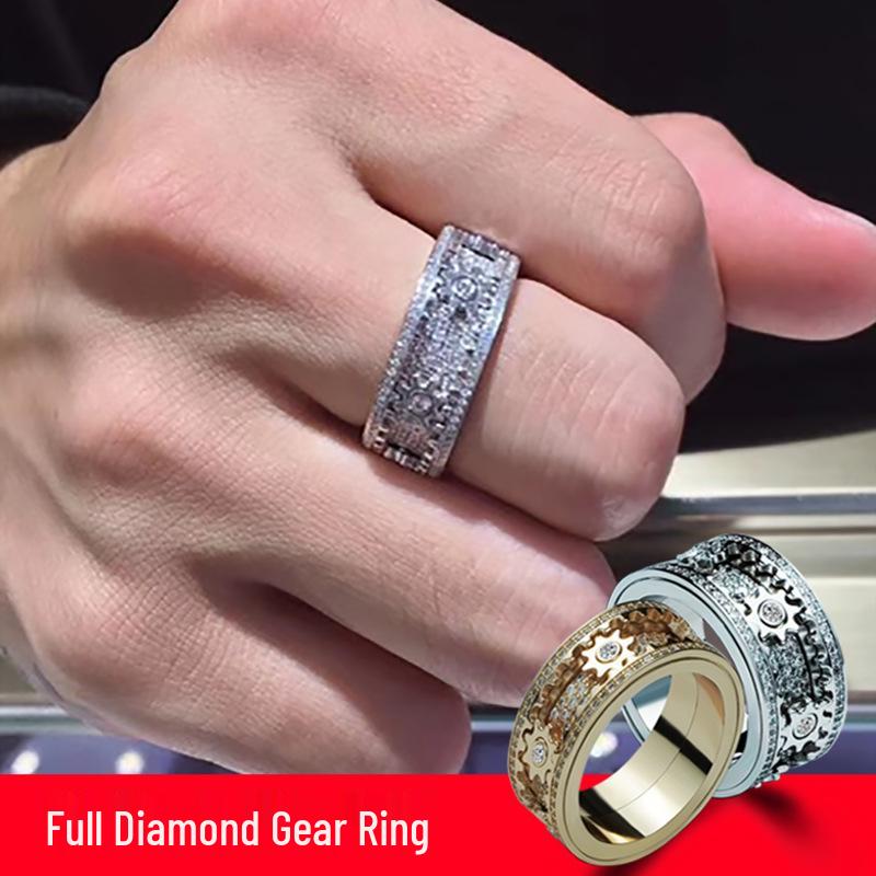 Pierścionek unisex z obracającym się trybikiem wysadzanym diamentami: Gwiezdny wzór dla par, Pierścionek na mały palec w całości wysadzany kamieniami