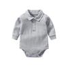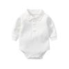 Unisex Bawełniany Romper Polo dla Niemowląt - Biały, Długi Rękaw, Kołnierzyk Kent