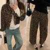 Spodnie codzienne, Wzór panterki, Długie spodnie, Spodnie z szerokimi nogawkami, Ciepłe spodnie, Luźny krój, Elastyczna talia, Wygodne, Lekko elastyczne
