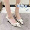 2025 autumn new comfortable soft leather metal buckle high heels women's versatile girl pointed thin heel shallow mouth single shoes