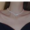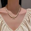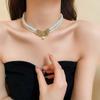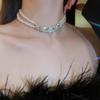 Naszyjnik dwuwarstwowy z barokowych pereł wysadzanych diamentami - Damski francuski retro łańcuszek na obojczyk, biżuteria modowa z wyższej półki.