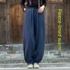 Damskie Retro Luźne Szorty Bawełniano-Lniane, Szerokie Nogawki, Ciemnoniebieskie