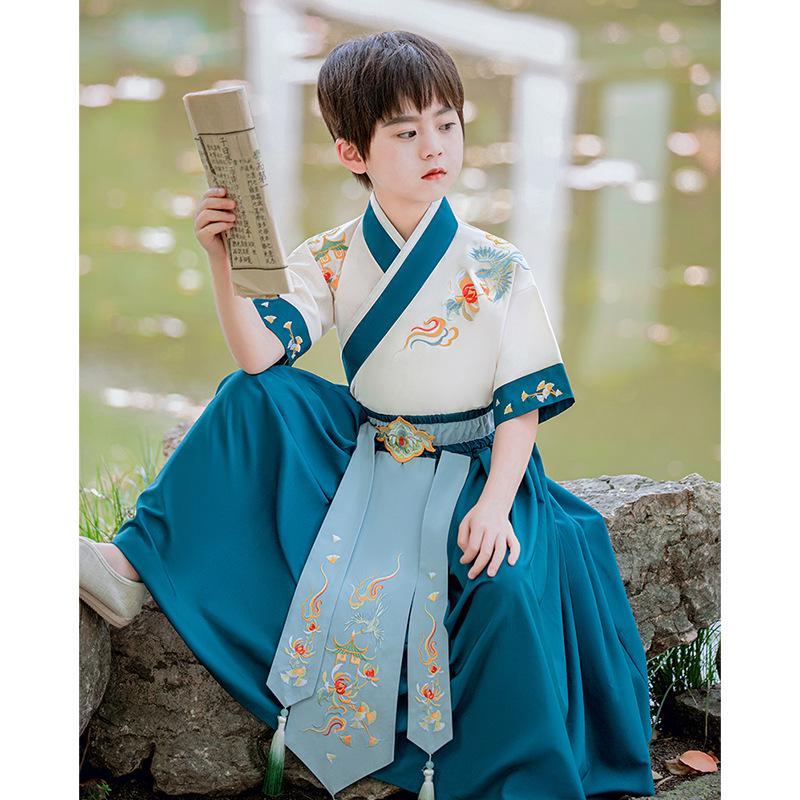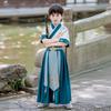 Lato 2024 Dziecięce Hanfu: Zestaw w stylu starożytnym - Garnitur Tang dla chłopców z krótkim rękawem - Strój młodego mistrza do studiów chińskich