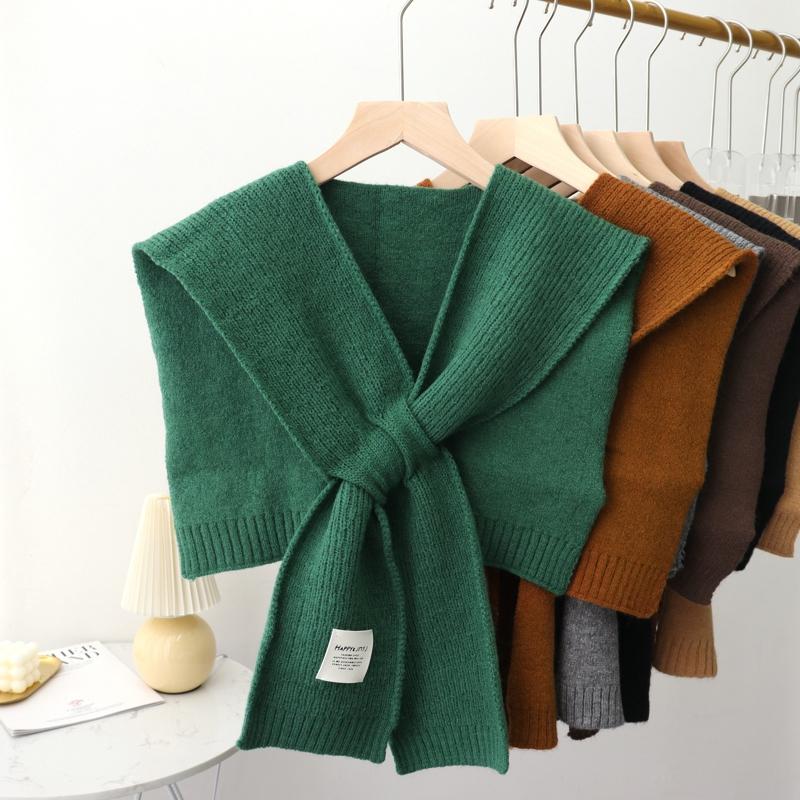 Koreański Sweter z Czystego Koloru Ciepły Szal Zimowy Damski Bluzka Ramiona Fałszywy Kołnierz Peleryna Wiązany Szalik Ochraniacz Na Szyję Szalik Dla Kobiet
