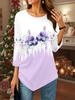 Damski luźny T-shirt z okrągłym dekoltem i rękawem trzy czwarte, wzór kwiatowy 3D