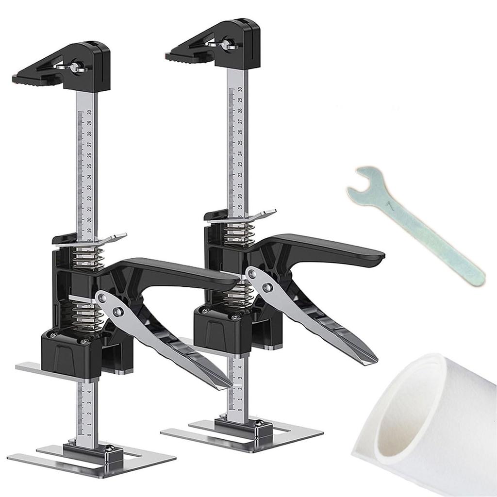 Ten produkt zawiera dwa podnośniki wysokiego podnoszenia, jeden nr. 7 klucz, i dwie grube maty. Maty służą do ochrony podłogi przed uszkodzeniami podczas podnoszenia przedmiotów.. To solidne stalowe wielofunkcyjne urządzenie podnoszące z regulacją wysokości jest idealne do paneli drzwi garażowych, podnośników do płyt i przenoszenia mebli.. Jego maksymalna nośność wynosi 300 kg. To świetne narzędzie DIY do stolarstwa oraz montażu ścian, podłóg, drzwi i szafek.