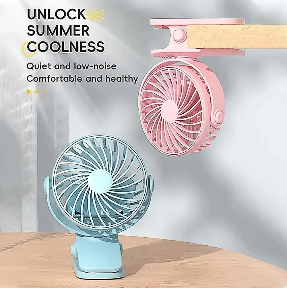 Rechargeable Fan 720° Rotating Hanging Clip Fan with Nightlight for Easy Portability Office Bedroom Dormitory Outdoor Small Fan