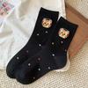 Cute Female Cartoon Mid-calf Socks for Women, Plush Bear Polka Dot Sweet Boneless Women's Socks