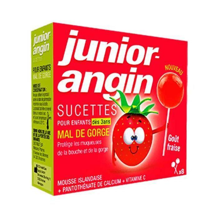 Junior Angin Mal de Gorge Arôme Fraise 8 sucettes