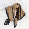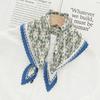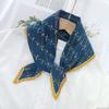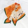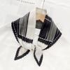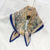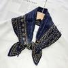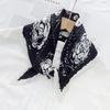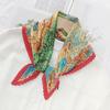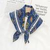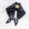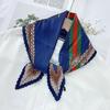Retro Color Block Crinkled Square Scarf - 70cm Pleated Neckerchief in Imitation Silk for Women