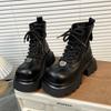 Europejskie oddychające buty Martina celebrytki internetowej damskie 2025 jesień nowe Spice Girl kwadratowy nosek duża głowa sznurowane gruba podeszwa podwyższające krótkie buty
