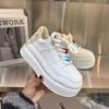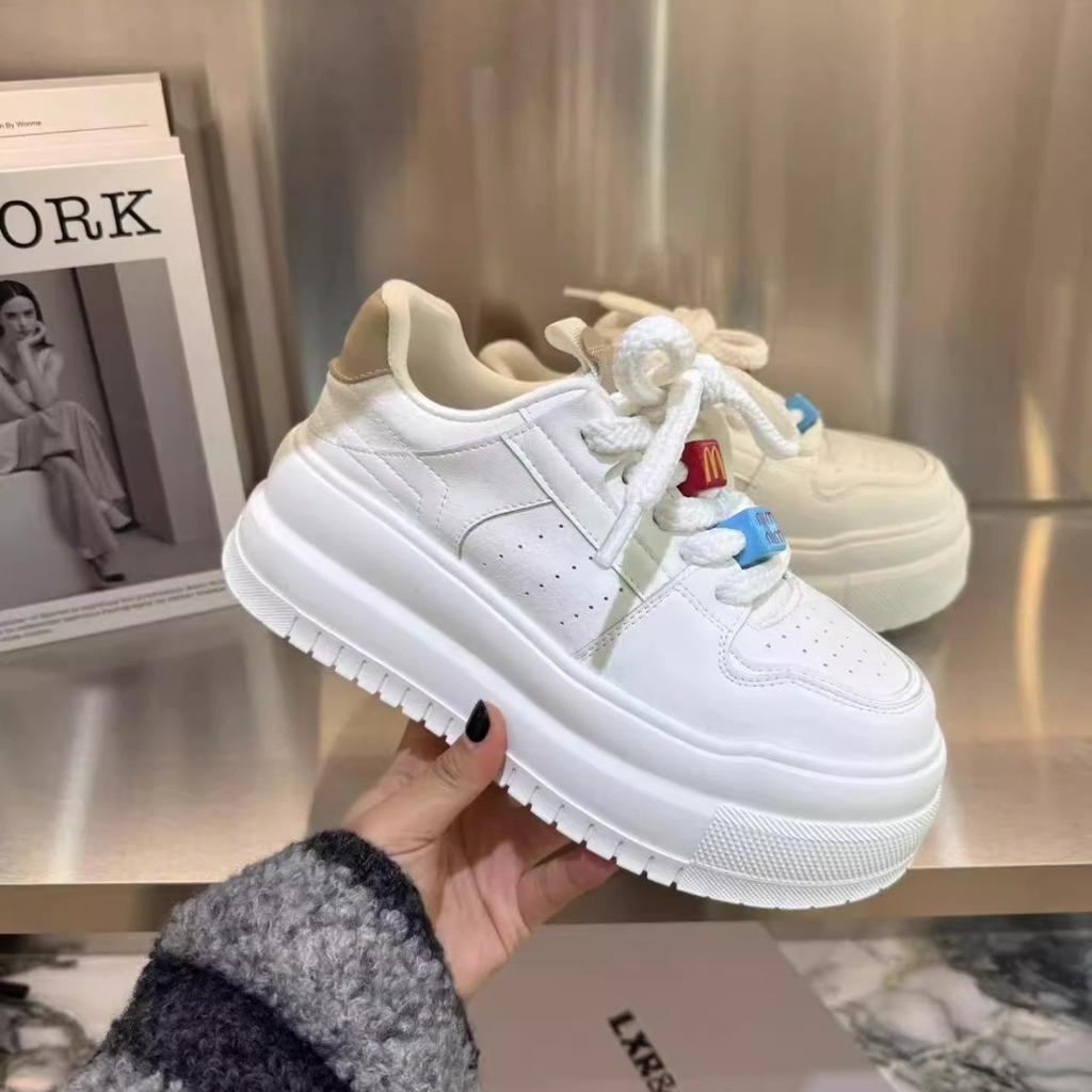 Leather platform white shoes women's shoes 2025 early spring new muffin shoes heightened Internet celebrities student sports and leisure shoes