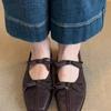 Miękkoskórzana wersja francuskich kwadratowych butów Mary Jane z kokardką damskie 2025 wiosna nowe wszechstronne codzienne płaskie lekkie buty