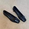 Soft leather version fashion bow square head single shoes women's 2025 spring new shallow mouth one pedal thick heel Mary Jane shoes