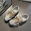 Srebrne retro lekkie i wszechstronne sneakersy podwyższające wewnętrznie na płaskiej podeszwie damskie 2025 nowe letnie miękkopodz solesowe niemieckie buty treningowe