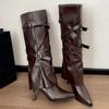 Brown British style but knee pointed stiletto boots women's boots 2025 new autumn retro trouser boots