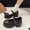 Czarne platformy w brytyjskim stylu, grube wysokie obcasy, małe skórzane buty damskie, nowość jesień 2025, spódnica, buty Mary Jane, buty na co dzień
