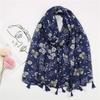 Autumn Fashion Ink Painting Floral Tassel Viscose Shawl Scarf Lady High Quality Wrap Pashmina Stole Bufandas Muslim Hijab Sjaal