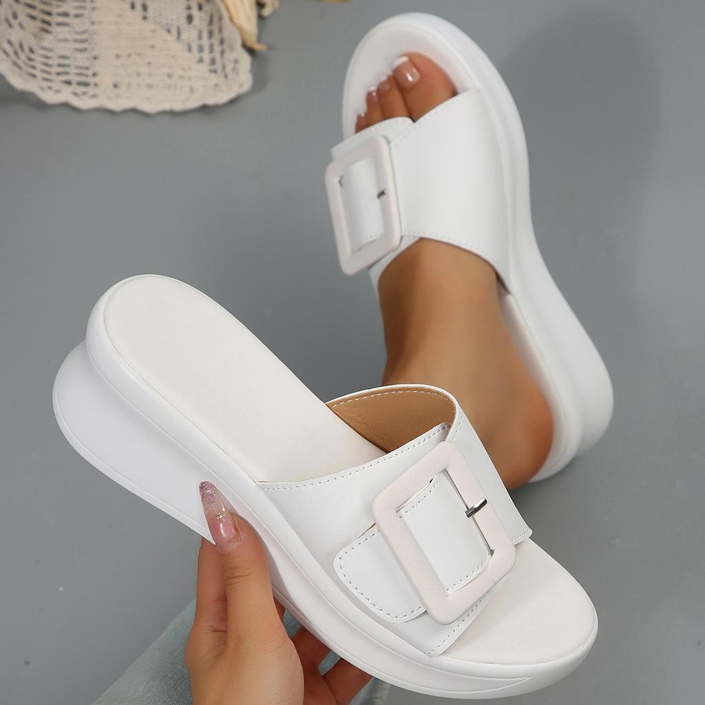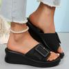 Korean simple solid color square buckle wedge slippers women wear new women's shoes Bohemian one-word slippers