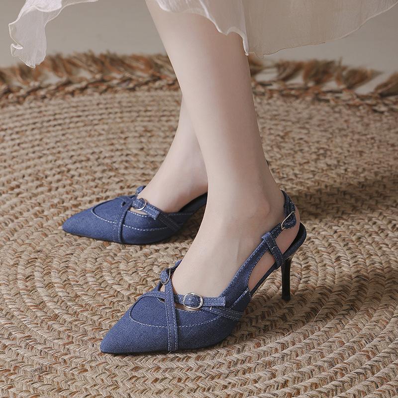 Wiosna i jesień 2025 nowy worek głowa lekka usta szpilki wysokie obcasy damskie sandały królewska siostra seksowne niebieskie piękny temperament pojedyncze buty