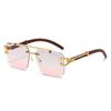 Nowe okulary przeciwsłoneczne kwadratowe bezramkowe z podwójnym mostkiem - Unisex Moda Europejska i Amerykańska Wzór Leopard