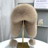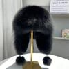 Damska czapka z lisiego futra chroniąca uszy, modna, luksusowa czapka bomberka z prawdziwego futra lisiego, zimowa czapka outdoorowa z miękkiej skóry owczej dla dziewcząt