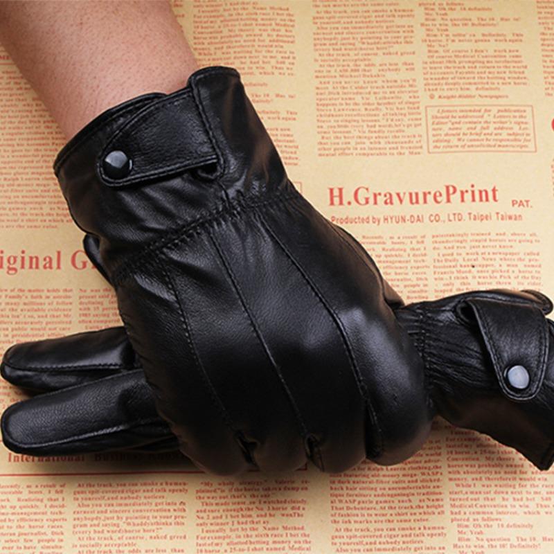Autumn and winter men's thermal leather gloves takeaway outdoor cycling velvet cold-proof women's sheepskin gloves winter