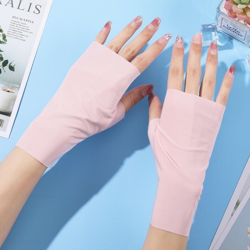 Sunscreen gloves women's summer UV protection thin cool breathable half finger riding driving ice silk manicure gloves