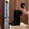 Height increase of 6cm~ 2025 autumn and winter new Korean knight boots round head buckle with soft folds and thin high boots for women