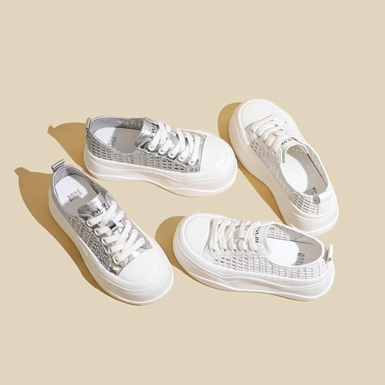 Thick-soled heightening little white shoes for women's 2025 summer new small heightening lightweight weaving hollow muffin sole casual shoes