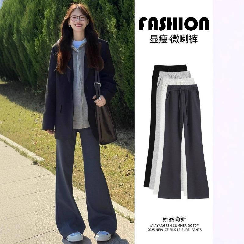 Gray flared sweatpants children's spring and autumn new high-waisted and thin casual sports small micro-pull sweatpants