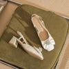 55105 high heels women's thick heel 2025 new square head empty sandals temperament rhinestone bow shoes