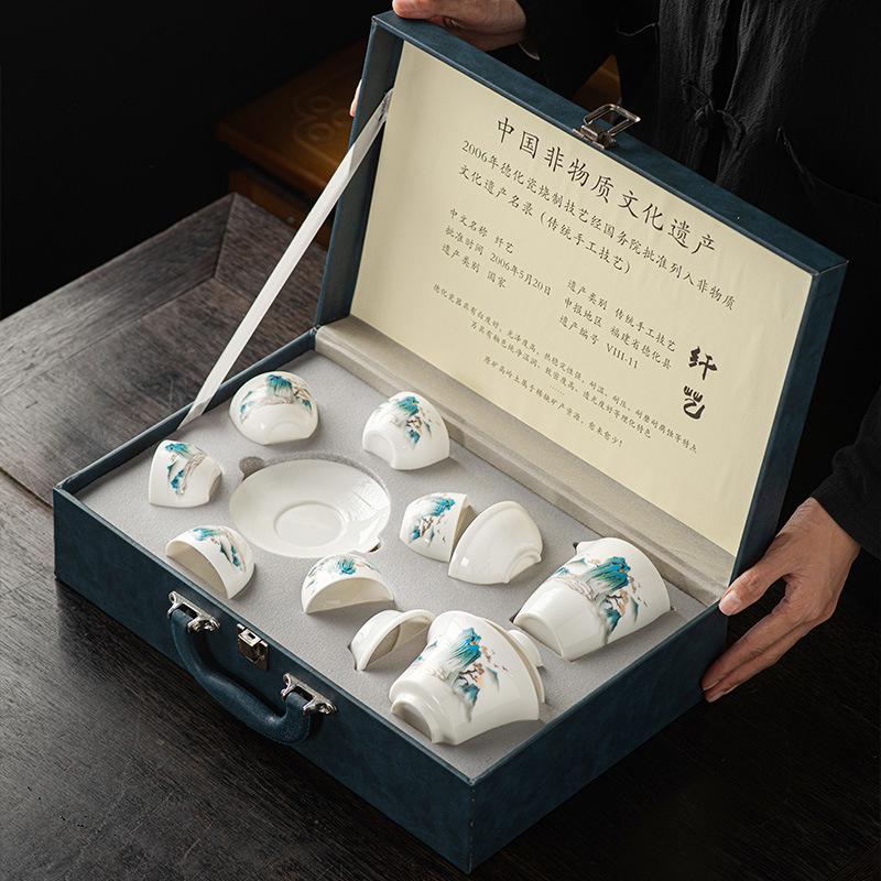 Tea set White porcelain household ceramic teapot cover bowl tea tray Suet jade high-end tea gift