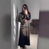 Damska sukienka maxi z długim rękawem w jednolitym kolorze, z wiązanymi rękawami lampionowymi
