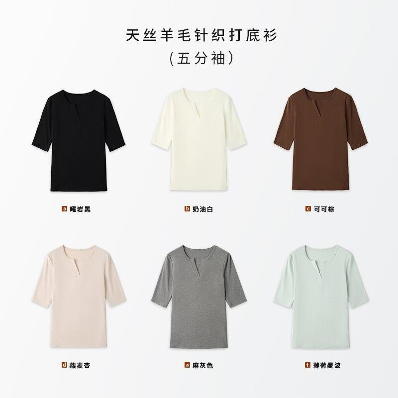 Tencel wool blended five-quarter-sleeved top autumn new simple soft waxy stacked knitted fabric bottoming shirt