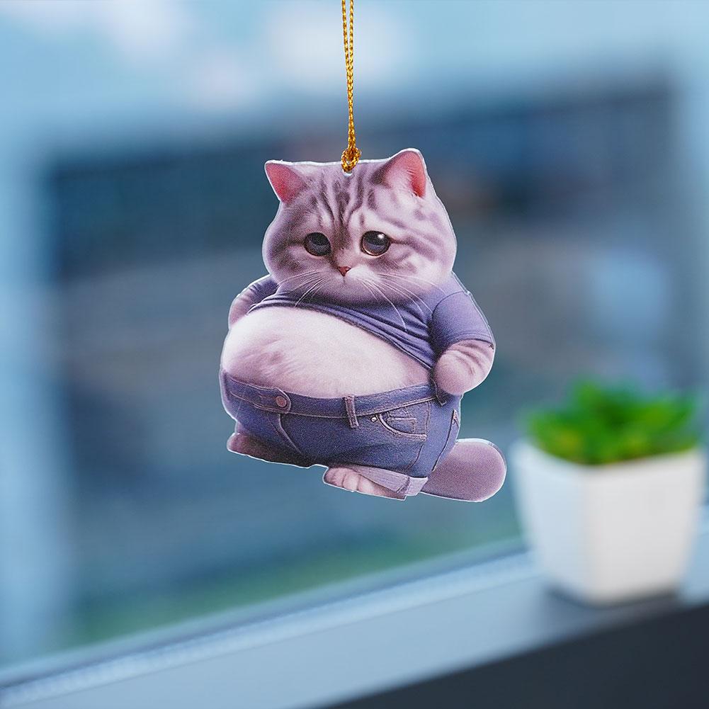 2D Car Cute Cat-Shaped Pendant Interior Mirror Hanging Keychain Realistic Animal Rearview Car Schoolbag Decor Accessories
